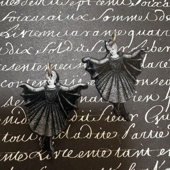 ハロウィン・レディ・コウモリ/プラスチック・ペンダント・トップ2個
